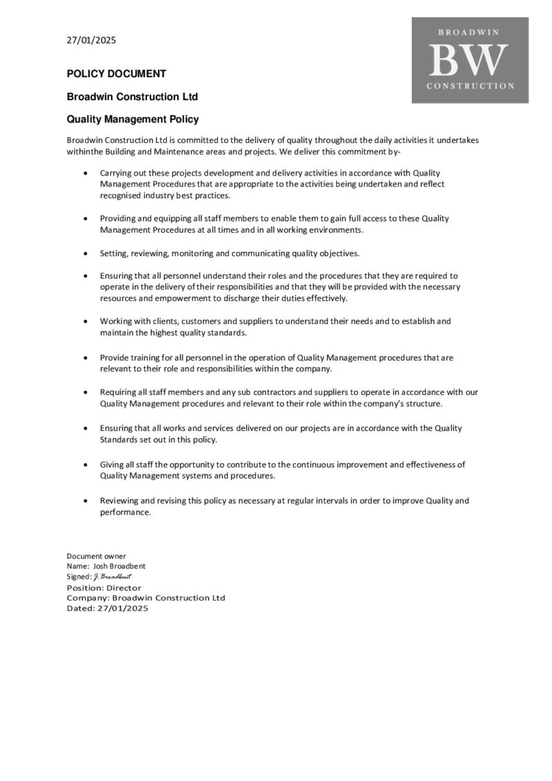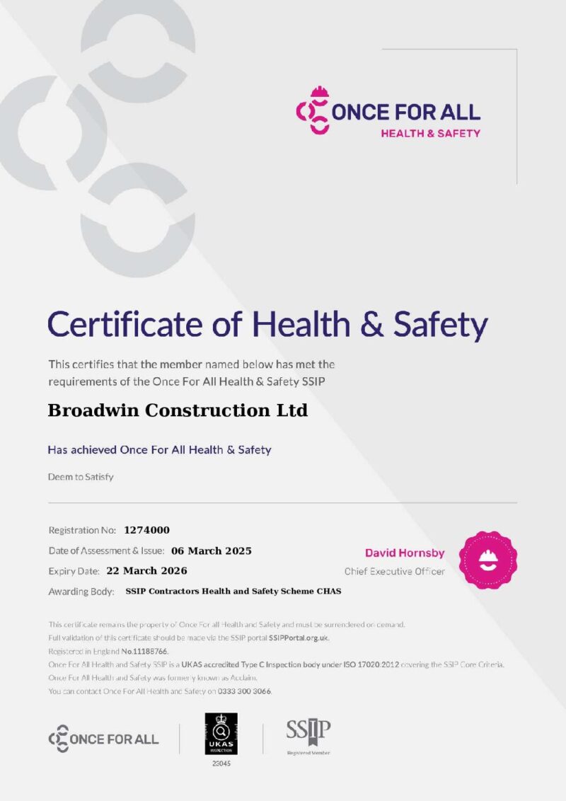 As a business, we’re committed to maintaining the highest standards on every site, ensuring a safe working environment for our team, clients, and the public. We hold comprehensive insurance coverage, including £5 million public liability and £10 million employer’s liability, providing complete confidence that all parties are fully protected. Our proactive approach to safety not only safeguards people, it supports smoother, more efficient project delivery.
